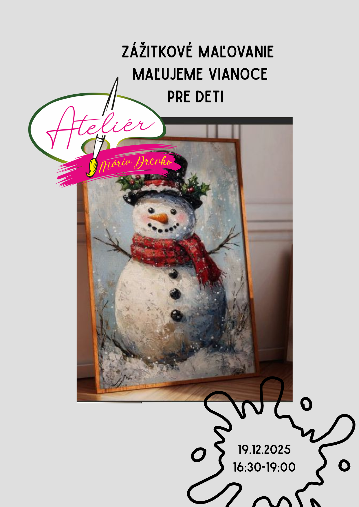 - V cene zahrnuté: výtvarný materiál a plátno (30×40 cm)