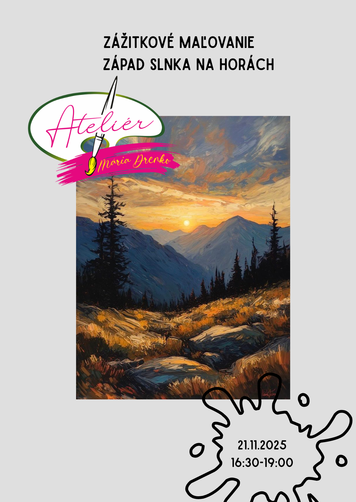 Pozývame vás na zážitkové maľovanie : Západ slnka na horách.